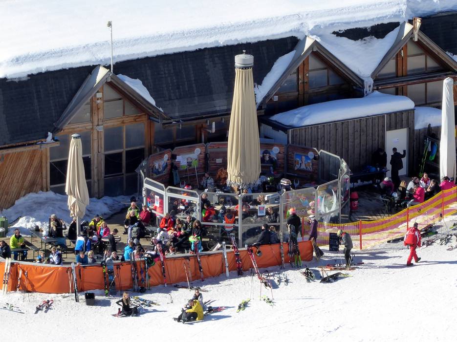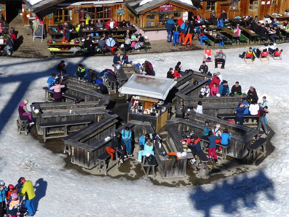 Bevor es ins Tal geht kann man in der Schirmbar und auf der Sonnenterrasse täglich Après-Ski machen. Bei gutem Sound genießt man coole Drinks und Snacks.