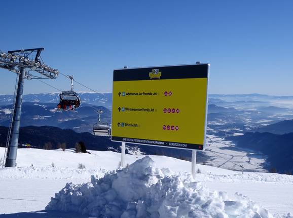 Orientierung (Pistenplan, Informationstafeln, Ausschilderung) und Sicherheit im Skigebiet Gerlitzen