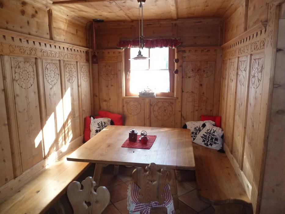 Die urige Hütte bietet handgeschnitzte Stuben und eine hervorragende Südtiroler Küche. Die ideale Lage macht die Hütte zu einem beliebten Anlaufpunkt.