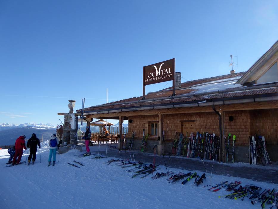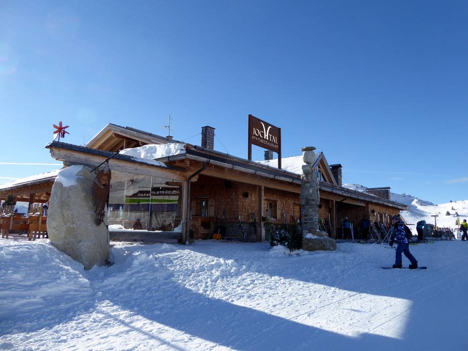 Die Skihütte an der Bergstation Jochtal ist eine größere Hütte. Es werden typische Tiroler Spezialitäten serviert. Ein Highlight ist die frische Pizza vom Holzofen. Bei schönem Wetter lockt die Sonnenterrasse.