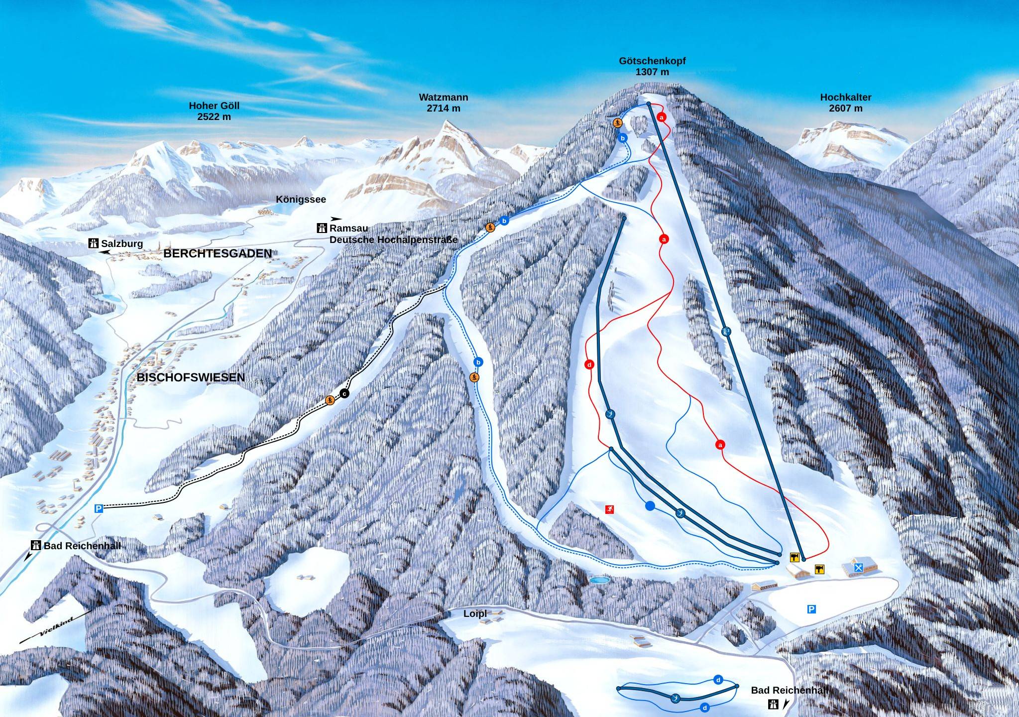 Orientierung (Pistenplan, Informationstafeln, Ausschilderung) und Sicherheit im Skigebiet Götschen – Bischofswiesen