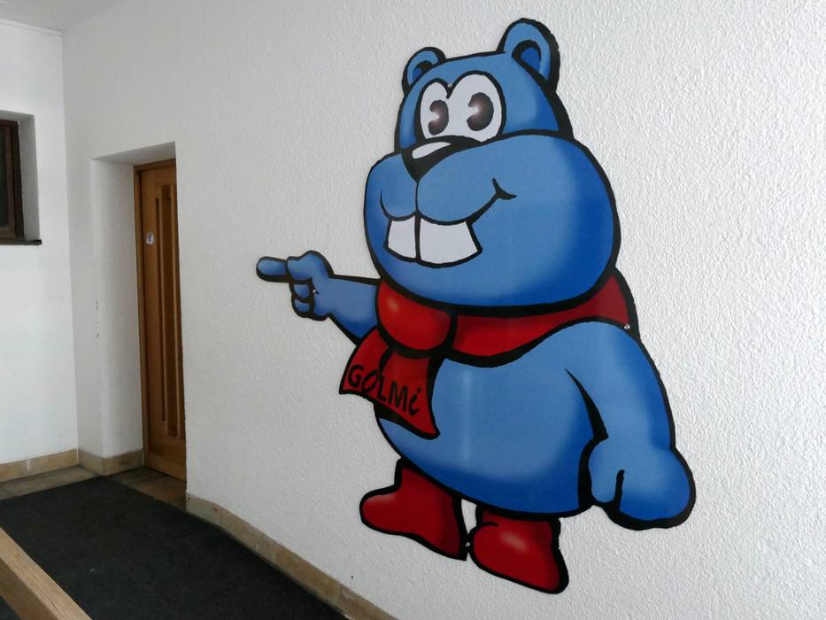 Das Maskottchen Golmi erklärt im Golmi-Wald auf spielerische Weise die FIS-Regeln.