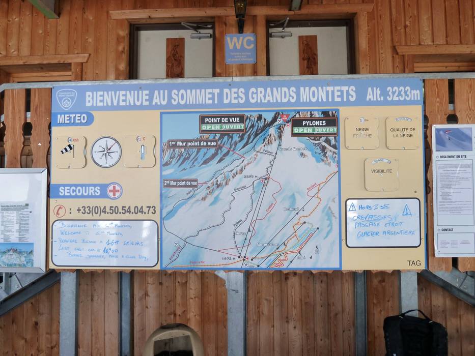 Orientierung (Pistenplan, Informationstafeln, Ausschilderung) und Sicherheit im Skigebiet Grands Montets – Argentière (Chamonix)