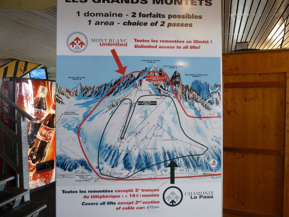 Der Pistenplan vom Skigebiet Les Grands Montets ist mit allen anderen Skigebieten von Chamonix in einer kleinen Broschüre zusammengefasst. Man findet dort für jedes der Skigebiete weiterführende Informationen. Einziger Nachteil ist, dass die Pistenpläne recht klein abgedruckt sind.