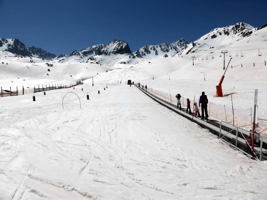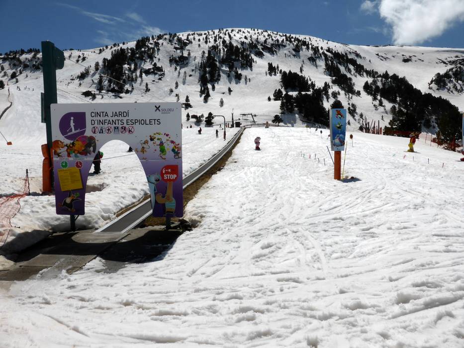 Das Kinderland liegt an der Bergstation der Gondelbahn von Soldeu und bietet Förderbänder und Übungslifte.
