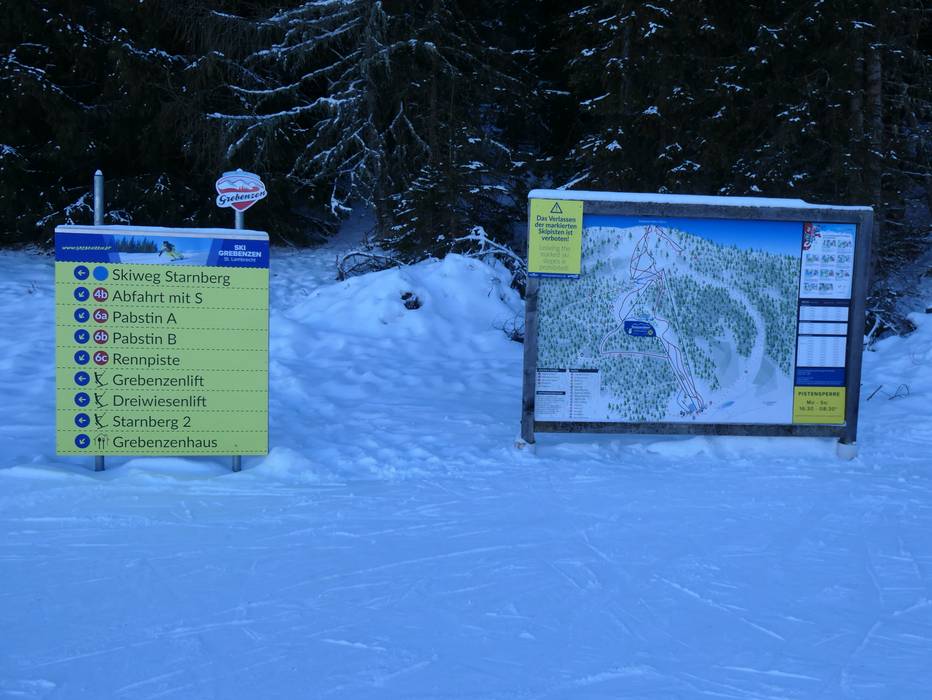 | Hinweis: Die Öffnungszeiten sind generelle Angaben vom Skigebiet GrebenzenHöhen – St. Lambrecht und können je nach äußeren Bedingungen, Wochentagen, Schulferien und Feiertagen variieren. | |