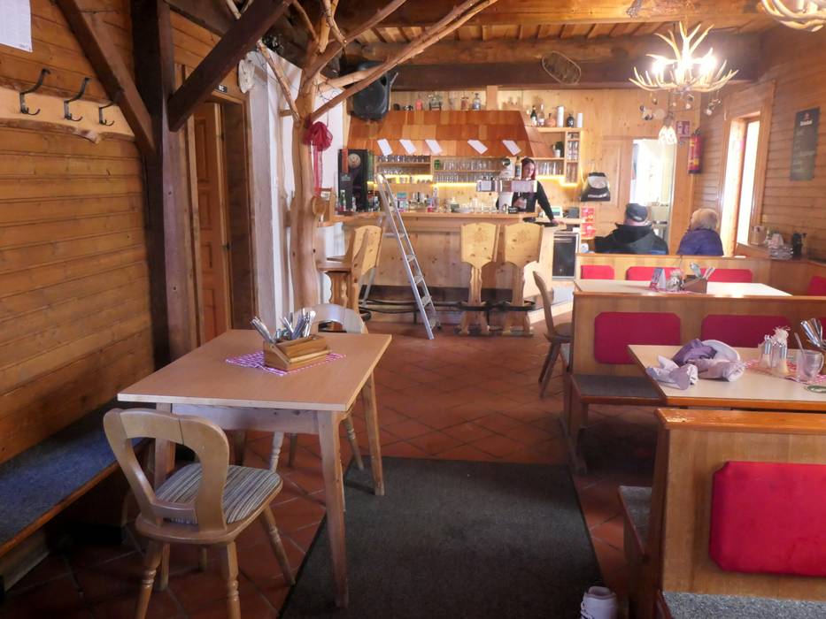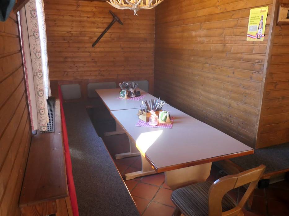 Die Gruber Alm ist sehr beliebt. Das hölzerne Achteck ist rustikal eingerichtet, rundum verglast und hat auch eine Sonnenterrasse. Verwöhnt wird mit Pizzen, Bratl, Schnitzel und Ripperl.