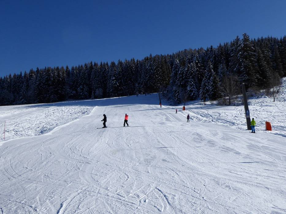 Die mittelschwere Dreiwiesenpiste befindet sich auf der sonnigen Südseite der Grebenzen am Dreiwiesenlift.
