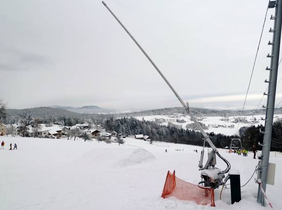 Dank der Beschneiung kann auf dem Südhang der Skibetrieb auch bei wenig Schnee gesichert werden.