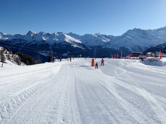 Anfänger sind in Grimentz und Zinal an den Übungspisten rund um Bendolla und rund um Sorebois sehr gut aufgehoben. Es gibt hier jeweils Förderbänder und Übungslifte. In Zinal gibt es ebenfalls einen Übungshang mit Förderband im Tal. Zwischen Sorebois und Espace Weisshorn findet man leichte und breite Pisten. In Grimentz locken leichte Pisten rund um Bendolla. Man kann sogar vom Roc d'Orzival und entlang der 6er-Sesselbahn Tsarva auf leichten und breiten Pisten bis Bendolla schwingen. Nach Grimentz führt ein leichter Ziehweg ins Tal. Von Zinal sind die Talabfahrten für Anfänger nicht geeignet und sie sollten mit den Bahnen ins Tal fahren.