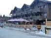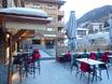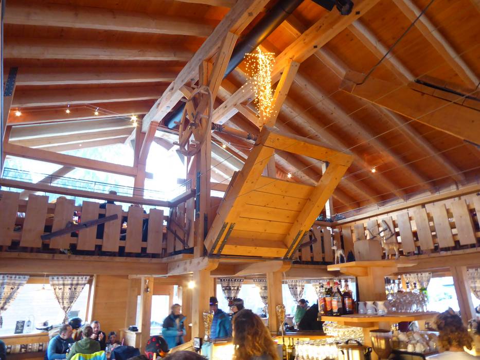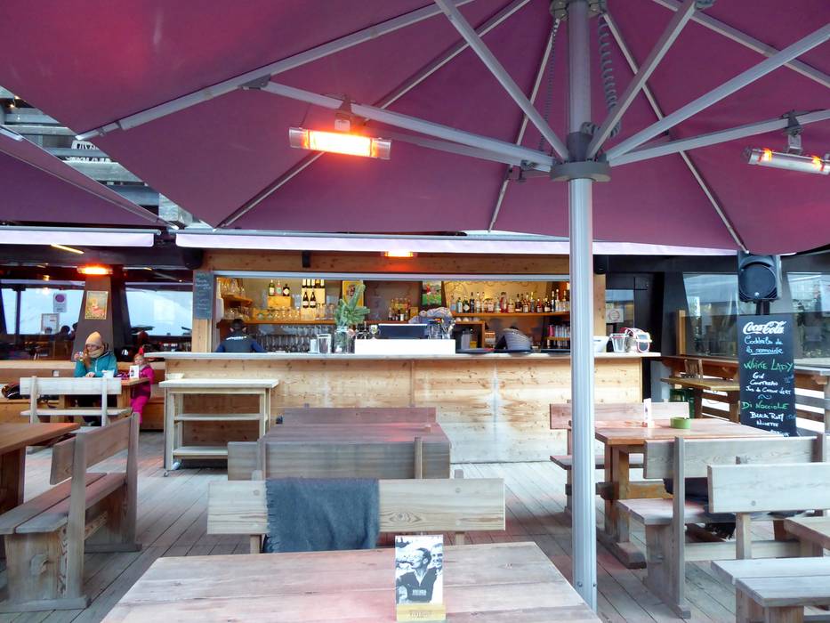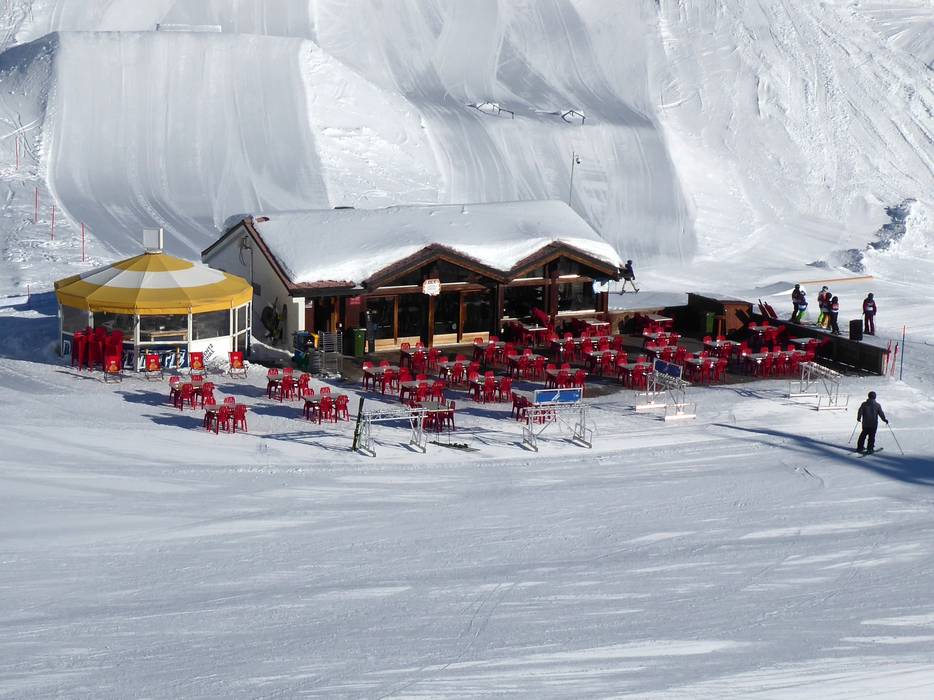 In der Brasserie Flocons de Neige kann man den Skitag ganz gediegen bei einem Drink und kleinen Köstlichkeiten ausklingen lassen. Von der Terrasse hat man einen guten Blick auf die Rue du Télésiège.