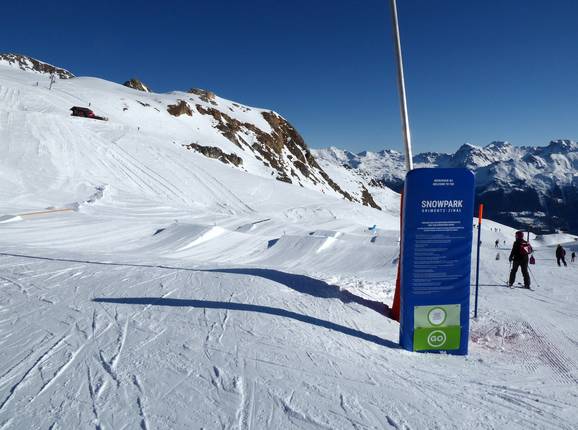 Der Snowpark Grimentz befindet sich im oberen Teil des Skigebiets am Tellerlift Orzival. Man kann an der ersten Kurve des Tellerlifts aussteigen und sofort in den Park starten. Verschiedene Kicker, Boxen, Jibs und Rails aller Schwierigkeitsgrade warten hier auf die Freestyler.