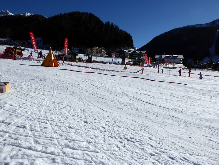 Die Skischule 2000 betreibt in Wolkenstein ein kleines Kinderland mit Förderband für die ersten Versuche im Schnee.