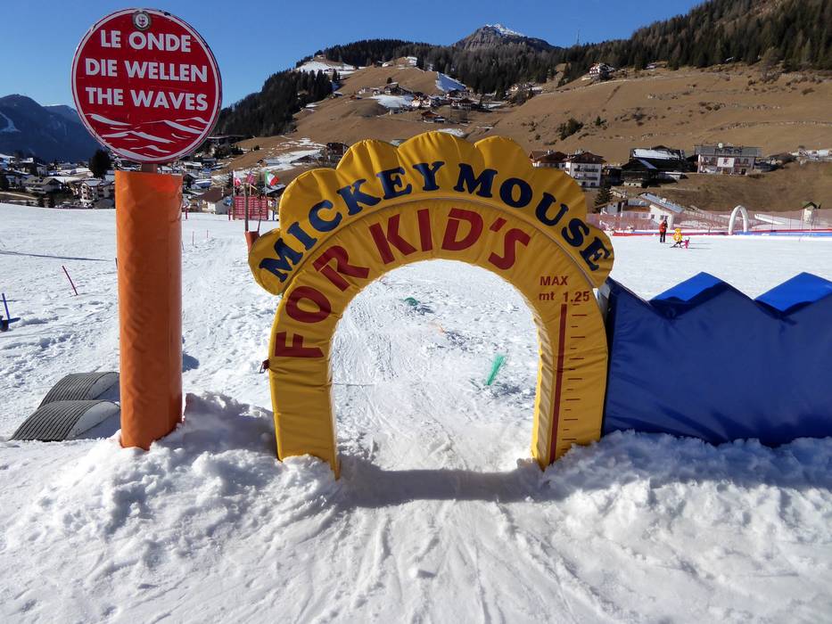 Die Skischule St. Ulrich betreut das Kinderland und den Mini Park Floc. Mehrere Förderbänder, Wellenbahnen und lustige Figuren stehen für die Kleinen zur Verfügung. Eine Rennstrecke und Tipi-Zelte runden das Angebot ab.