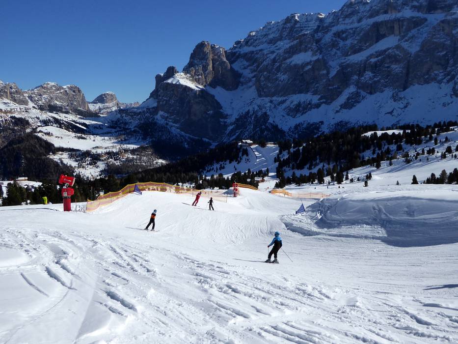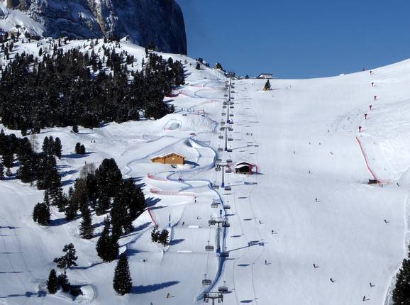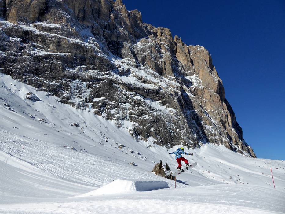 Das Skigebiet Gröden bietet mehrere Snowparks und Funslopes. Ein Boardercross am Piz Sella rundet das Angebot ab. Hier bleiben keine Wünsche offen.