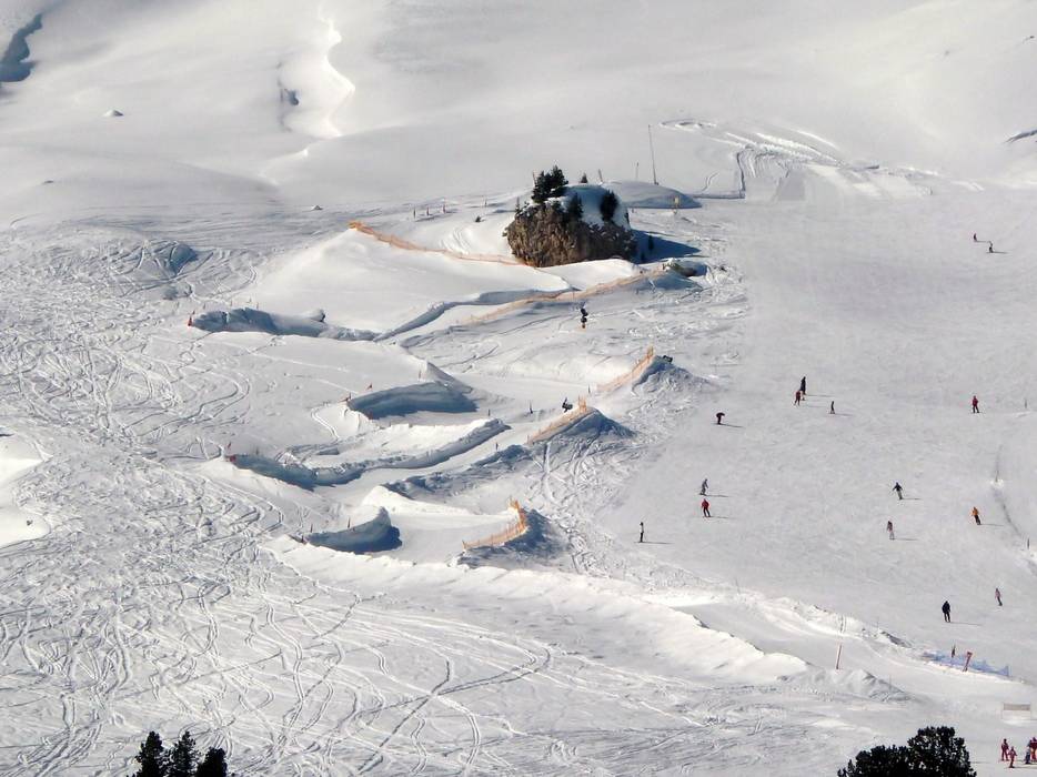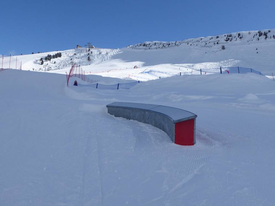 Der Snowpark Sotsaslong befindet sich an der gleichnamigen Vierersesselbahn am Piz Sella. Jumps, Rails und Boxen lassen hier jedes Freestylerherz höher schlagen.