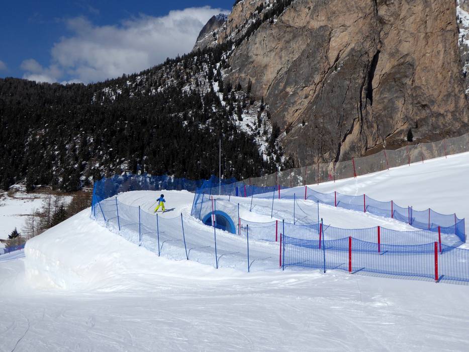 Die Funslope Selva befindet sich in Wolkenstein an den beiden Tellerliften Risaccia. Hier gibt es scharfe Steilkurven, zackige Wellen und flotte Sprünge. Eine Schnecke und lustige Geräusche runden den Spaß in der Funslope Selva ab.