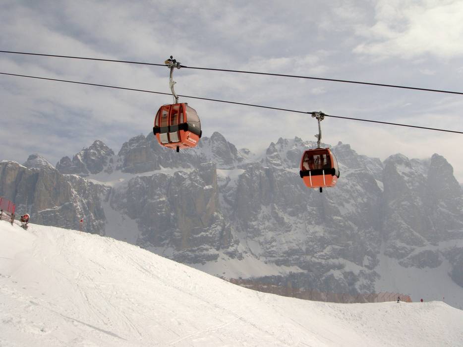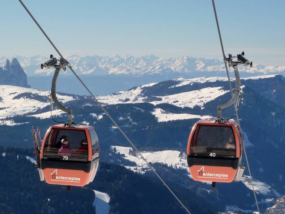 Umlaufbahn/Gondelbahn im Skigebiet Gröden (Val Gardena)