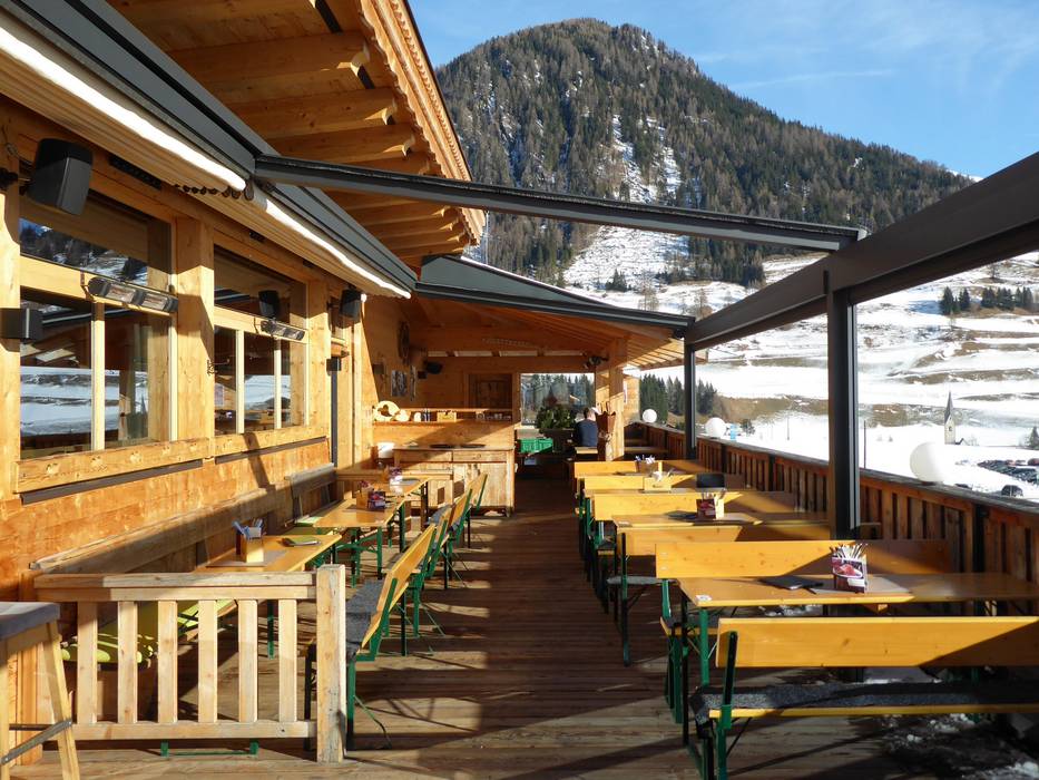 Die Roat´z Bodn Hittn ist eine urige Hütte mit viel Holz und Kachelofen. Es werden typische regionale Spezialitäten serviert. Bei schönem Wetter lockt die Sonnenterrasse.