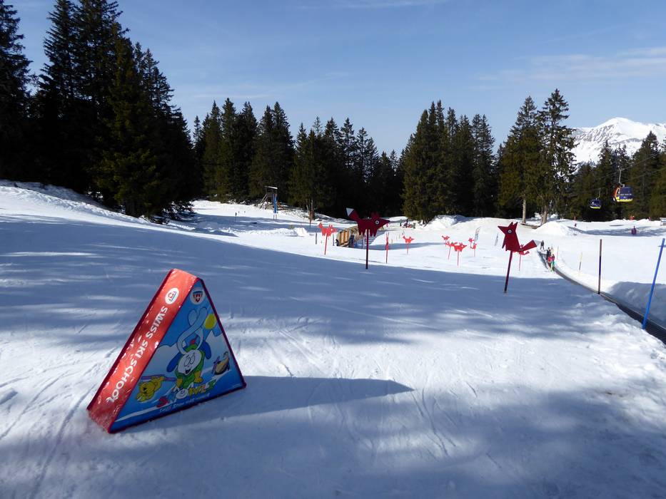 Das Kinderland befindet sich direkt an der Bergstation Schwänzelegg auf 1800 m Höhe. Die Nutzung des Kinderlandes ist für alle Gäste und Kinder kostenfrei. Es muss lediglich eine Berg- und Talfahrt mit der Gondelbahn gelöst werden. Im Kinderland erschließen mehrere Förderbänder rund 10 kleine Pisten. Kinder lieben das Musiktunnel-Förderband und die lustigen Figuren. Die beiden Geisterbahnen (eine Große mit Ende am Schwendilift und eine Kleine im Kinderland) lassen Kinderherzen höher schlagen. Das Kinderkarussell ist vor allem bei den ganz Kleinen sehr beliebt. Zudem gibt es mehrere kleine Obstacles und so kann man schon mal für den großen Snowpark üben. Viel mehr geht nun wirklich nicht mehr!