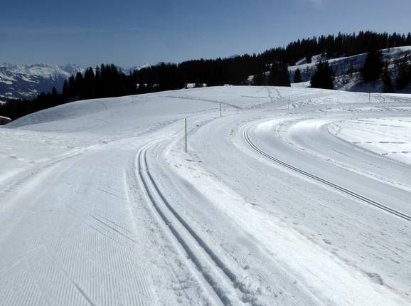 Die Langlaufloipen (Klassisch und Skating) befinden sich direkt unterhalb vom Berghaus Schwänzelegg auf dem Danusa Hochplateau in rund 1800 m Höhe. Die Anreise erfolgt bequem mit der 8er-Gondelbahn vom Tal. Von den Loipen hat man einen herrlichen 360 Grad Rundumblick auf die umliegenden Berge.