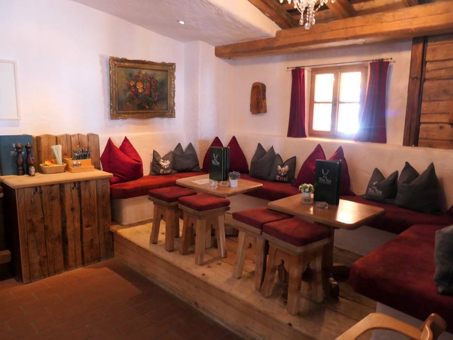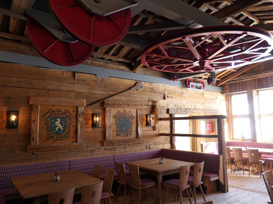 Das Bedienungsrestaurant am Bergrücken der Hohen Mut bietet Tiroler und internationale Spezialitäten auf höchstem Niveau. Viel Holz formt die gemütliche Hütte im Tiroler Stil mit je 200 Sitzplätzen im Restaurant und auf der Sonnenterrasse. Gemütliche Stuben, ein Weinkeller und eine Bar mit offenem Kamin schaffen ein Ambiente zum Wohlfühlen. Der Blick auf die umliegenden Berge ist grandios.