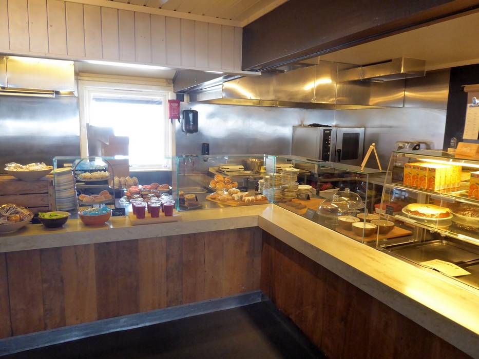 Das Café ist in einem traditionellen norwegischen Stil gehalten – warm und einladend mit rustikalen Holzmöbeln. Bei schönem Wetter kann man auf der Sonnenterrasse den tollen Bergblick genießen.