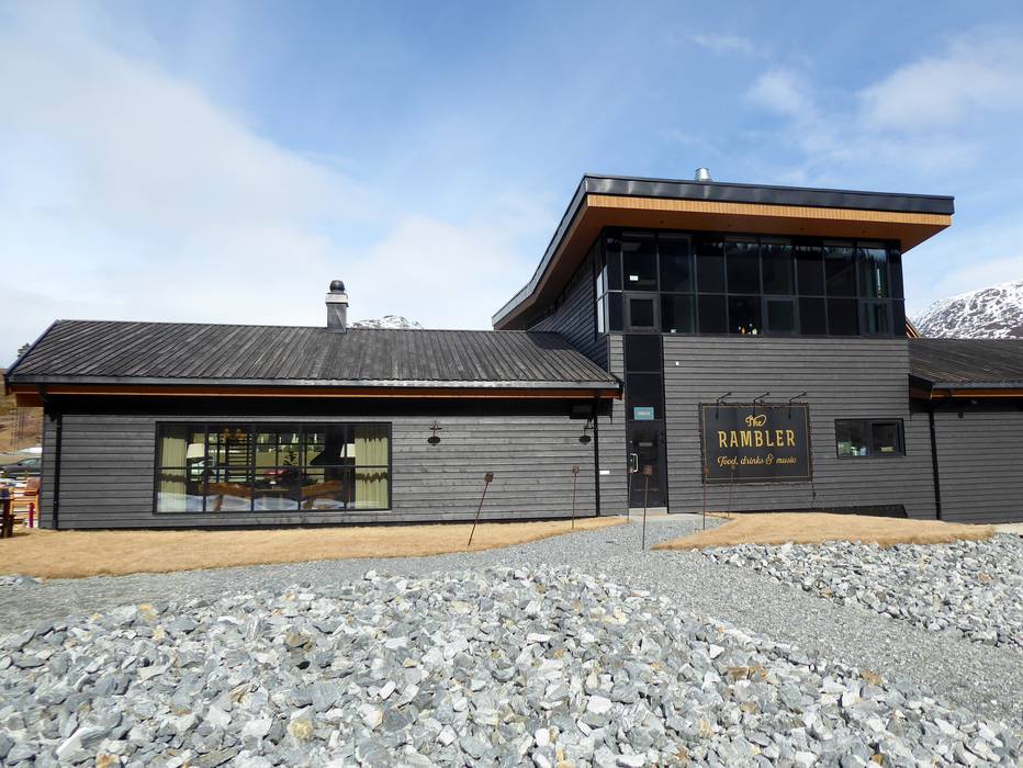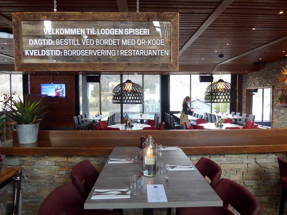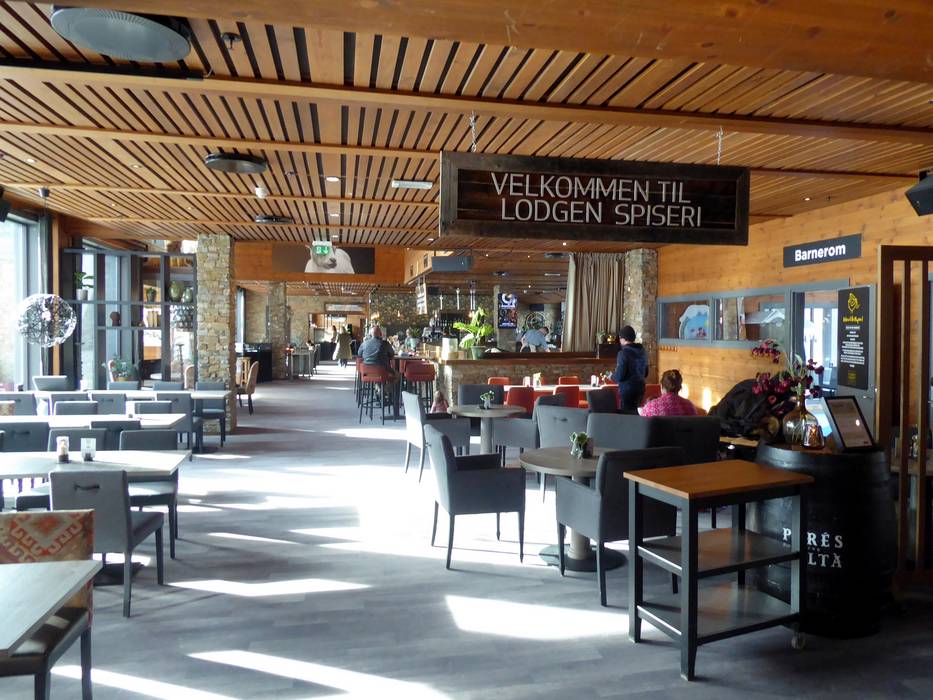 Das Restaurant Rambler serviert eine Mischung aus norwegischen Klassikern und internationalen Gerichten. Besonders beliebt sind die Burger, Fleischgerichte und vegane Optionen. An kalten Tagen wärmt ein offener Kamin. Bei schönem Wetter lockt die Sonnenterrasse.
