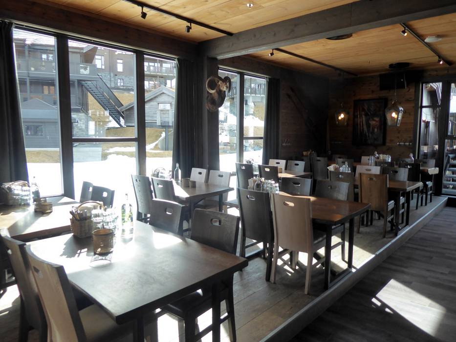 Das Restaurant ist modern, aber mit einem gemütlichen Touch. Die große Fensterfront bietet eine tolle Aussicht auf die Pisten. Es werden internationale Klassiker wie Pizza, Burger und Fish and Chips serviert. Ein Kindermenü rundet das Angebot ab. Nach dem Skifahren lädt die Bar auf einen Drink ein.
