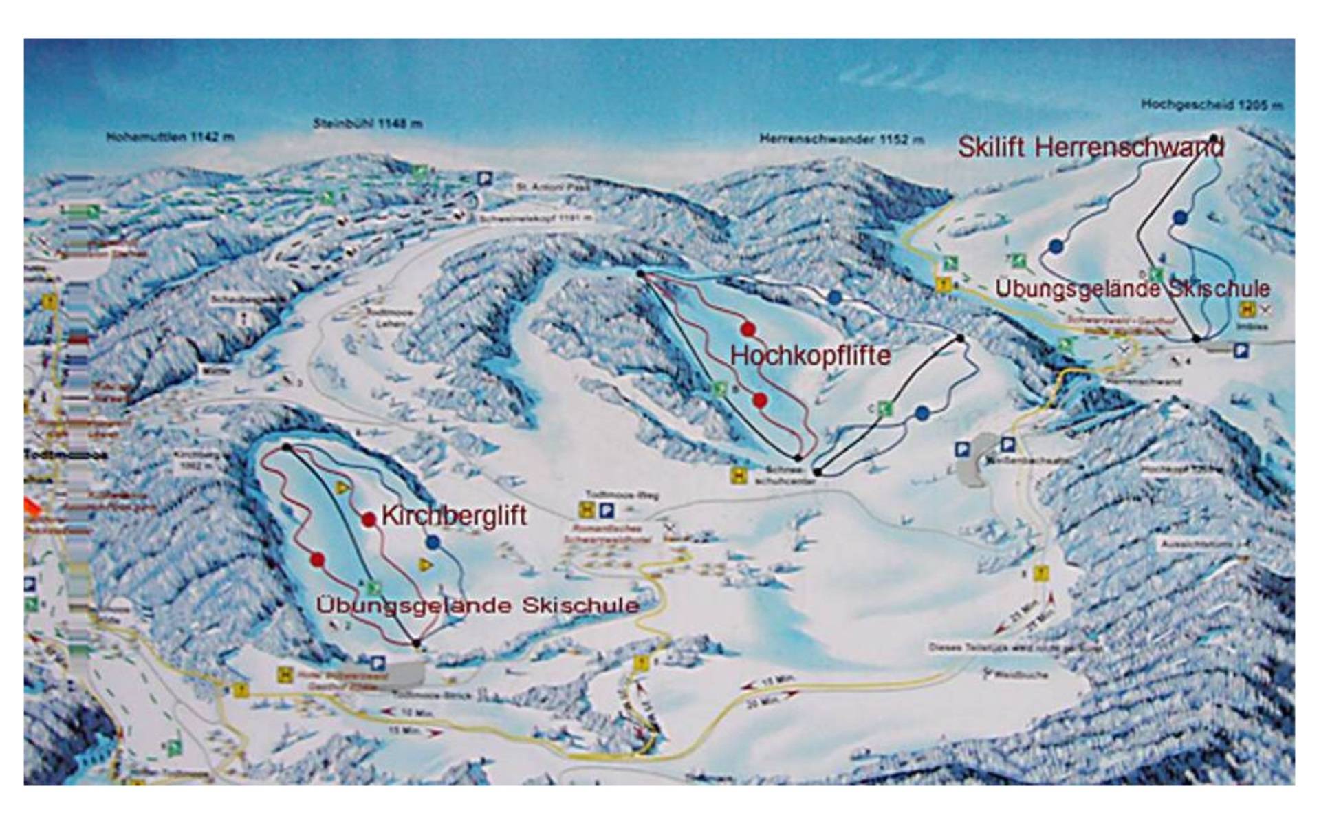 Orte am Skigebiet (Entfernung vom Ortszentrum):