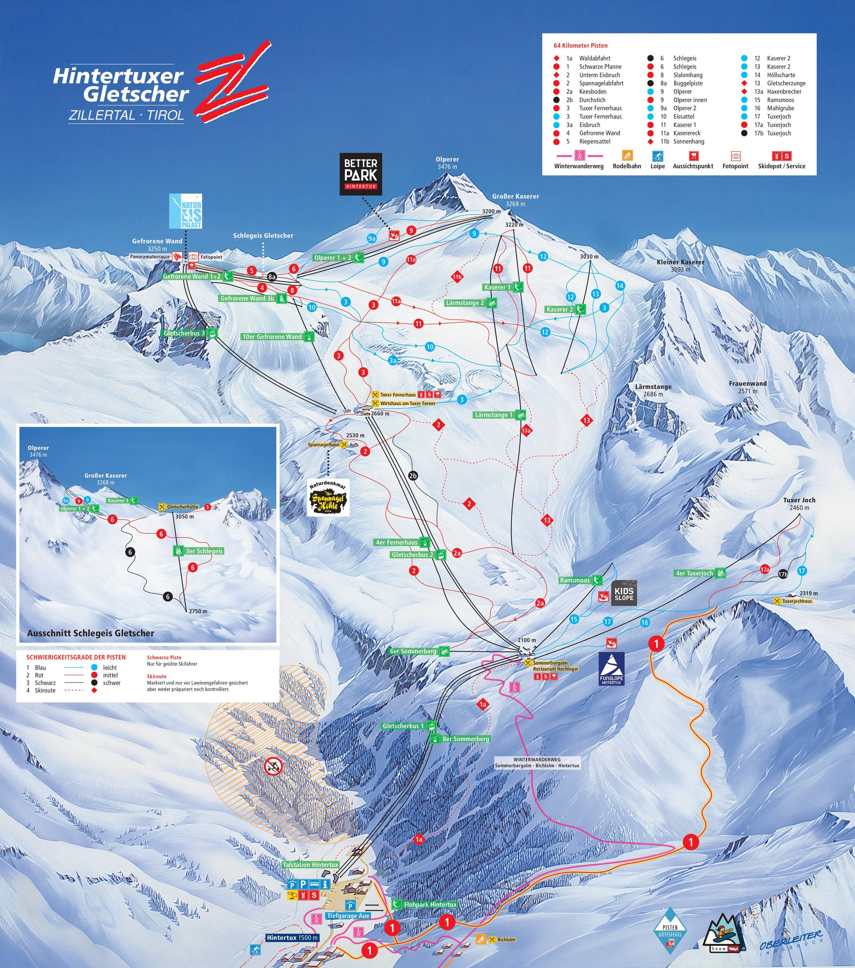 Pistenplan Hintertuxer Gletscher Saison 2025/2026