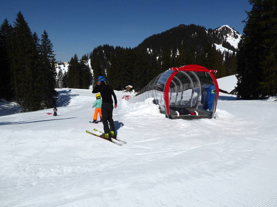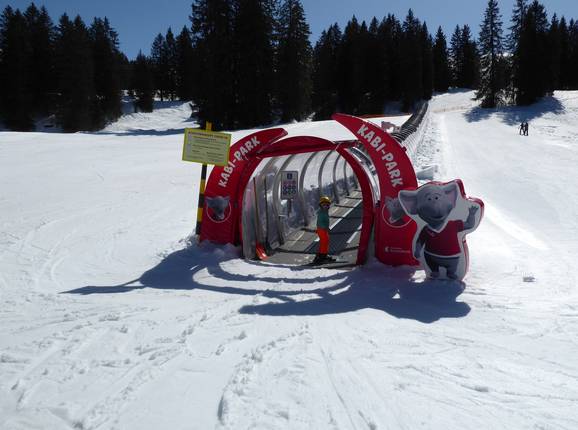 An der Bergstation der Luftseilbahn Weglosen-Seebli befindet sich der Kabi-Park mit Förderbändern und idealen Pisten für die Kleinen. Hier ist auch der ideale Platz für die Skischulen zum Üben.
