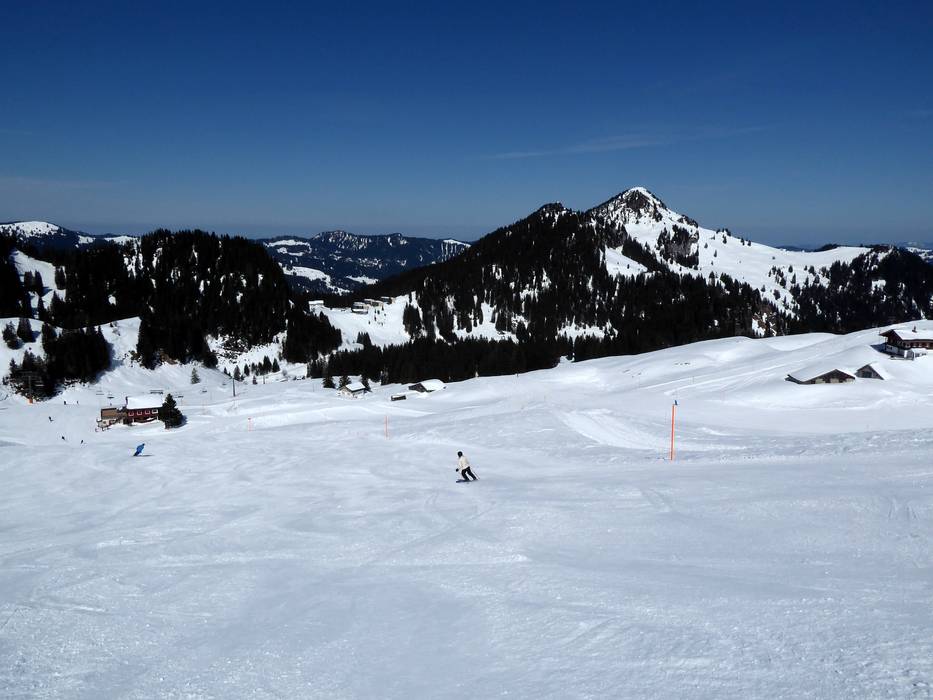 Blick über Snowpark bis zum Roggenstock Hesisbolpiste mit Blick zum Roggenstock Blick vom Laucherenstöckli in Richtung Druesberg…