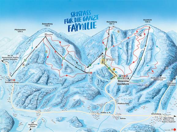 Klaffer am Hochficht (7 km), Schwarzenberg am Böhmerwald (2,3 km), Orte am Skigebiet