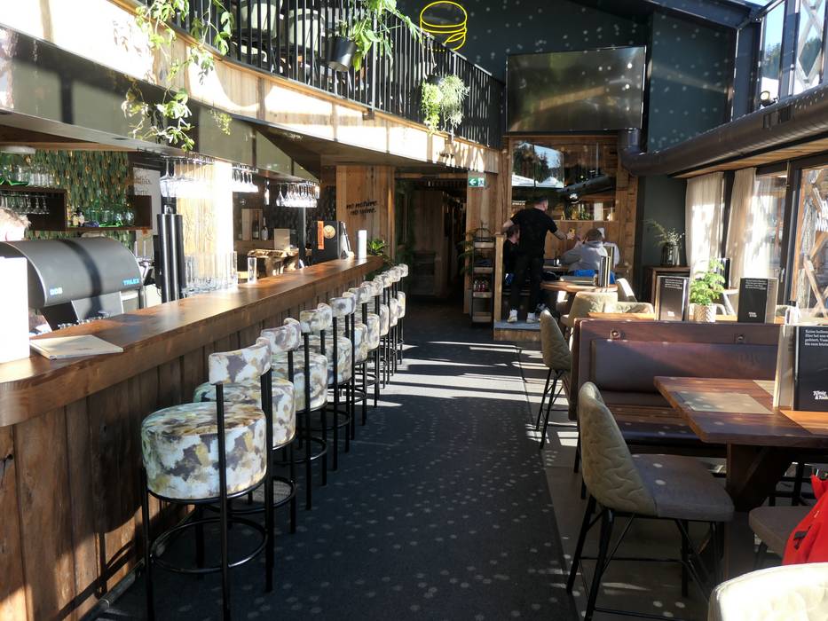 Zwei gemütliche, urige Hütten sind durch einen chilligen Bar- und Loungebereich miteinander verbunden. Darüber thront die große Panorama-Terrasse, welche den Gästen herrliche Bergblicke gewährt - Freiluftkino für den ganz großen Horizont.