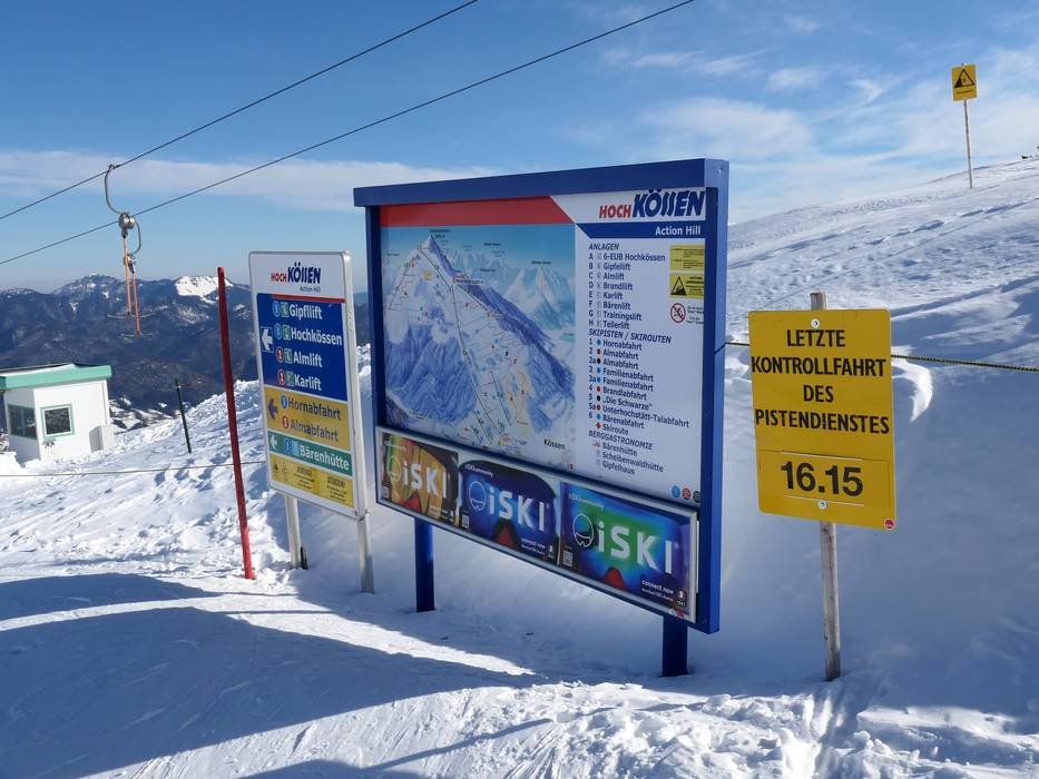 Im Skigebiet Hochkössen befinden sich an der Talstation und auf den Pisten umfassende Informationen. Die Beschilderung und die Pistenmarkierung ist gut.
