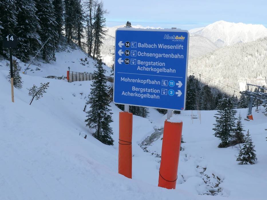 Orientierung (Pistenplan, Informationstafeln, Ausschilderung) und Sicherheit im Skigebiet Hochoetz – Oetz