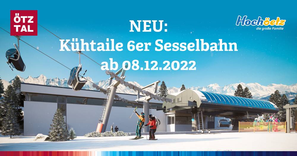 Die 6er-Sesselbahn Kühtailebahn im Skigebiet Hochoetz/Oetz wurde von Skiresort.de, dem weltweit größten Testportal von Skigebieten, als bester neuer Lift 2023 ausgezeichnet.