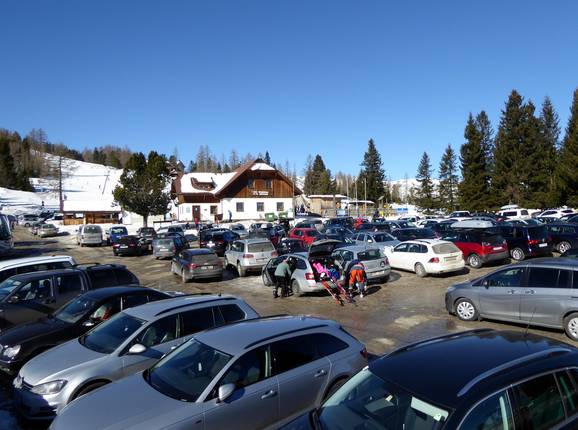 Der Haupteinstieg mit einem großen Parkplatz liegt bei den Zirbenliften. Weitere Parkplätze befinden sich bei der gemeinsamen Talstation von Kruckenlift und Sesselbahn Hochrindl/Sonnenlift. Man kann auch an einigen Stellen in Pistennähe entlang der Landesstraße parken (Pistenunterführung Sesselbahn, Pistenunterführung Kegellift oder nach der Ortstafel Hochrindl von Sirnitz kommend). Alle Parkplätze sind kostenlos.