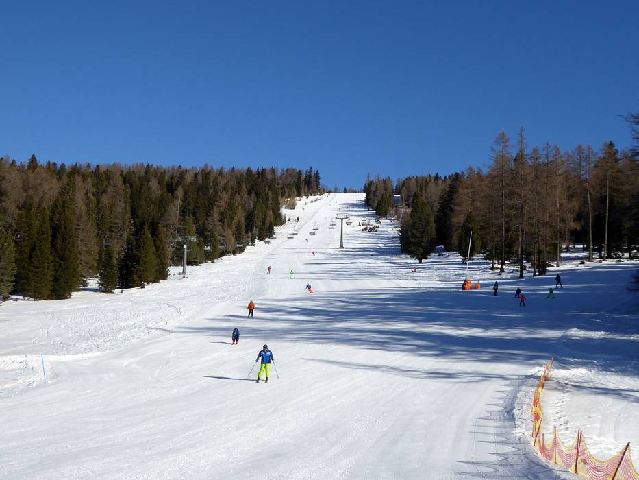 Hier kann man an den drei Pisten bei der Sesselbahn die Sonne bis in den späten Nachmittag genießen. - Zirbenabfahrt 2