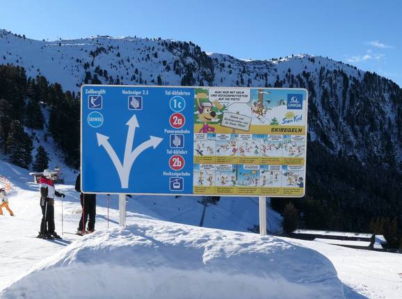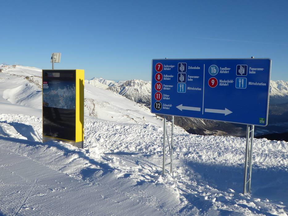 Orientierung (Pistenplan, Informationstafeln, Ausschilderung) und Sicherheit im Skigebiet Hochzeiger – Jerzens