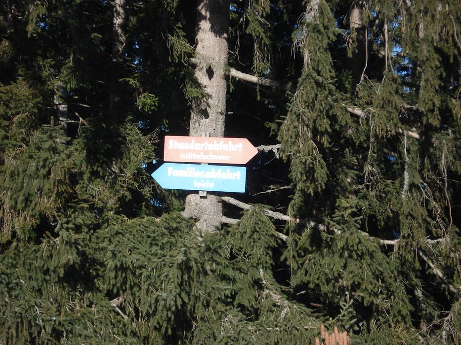 Die Ausschilderung ist nicht einheitlich. Man findet seinen Weg, wenn man die Augen offen hält und die Hinweisschilder am Pistenrand entdeckt.