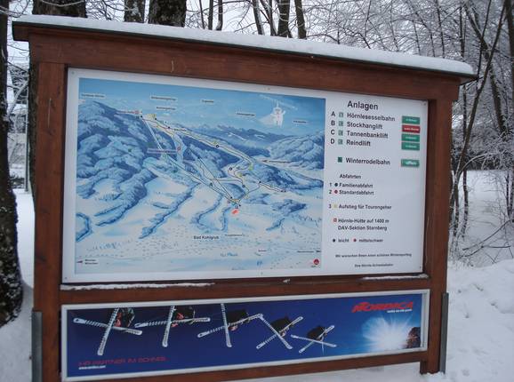 Orientierung (Pistenplan, Informationstafeln, Ausschilderung) und Sicherheit im Skigebiet Hörnle – Bad Kohlgrub