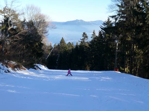 Leichte Pisten im Talbereich. Skischulen bieten Skikurse an. Winterrodelbahn steht bereit.