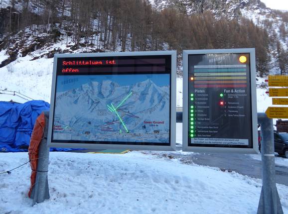 Die Ausschilderung im Skigebiet Hohsaas ist vorbildlich. An der Talstation findet man aktuelle Betriebsinformationen und Webcams. Im Skigebiet sind alle Pisten ausgeschildert. Man findet sich sehr gut zurecht.