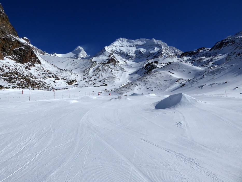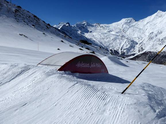Der keine Snowpark Hohsaas befindet sich zwischen Kreuzboden und der Trift. Leicht zu erreichen mit der Achtergondelbahn Trift-Kreuzboden. Er bietet Kicker und Rails.