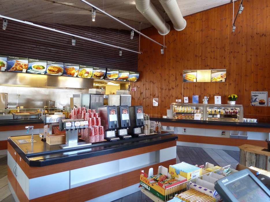 Die Einkehrmöglichkeiten beschränken sich auf das Hovden Alpinsenter. Dort gibt es die "Kafeteria" und etwas oberhalb die wunderschöne "Hovden Lodge". Ansonsten findet man nur noch an der Talstation des Breiven-Expressen einen kleinen Kiosk.