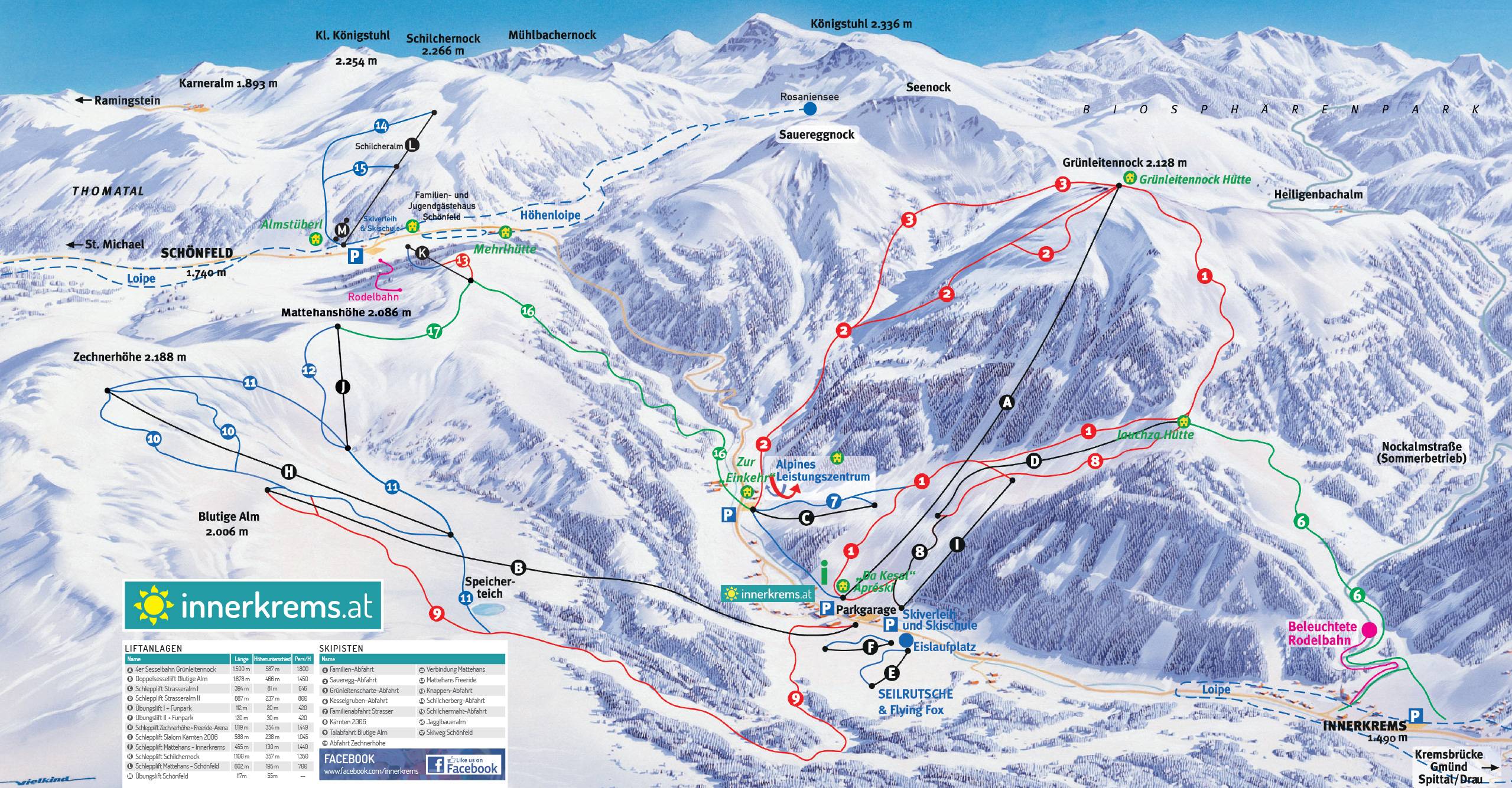 Pistenplan vom Skigebiet Innerkrems – Kremsbrücke (Krems in Kärnten)