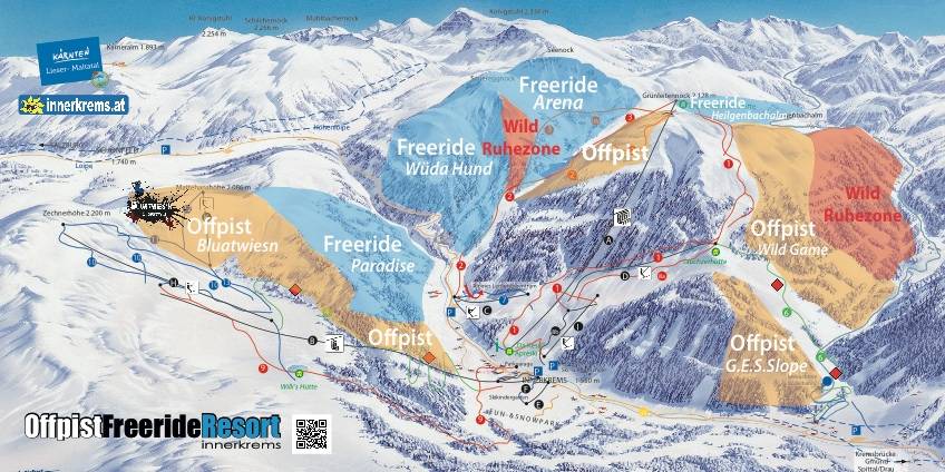 Pistenplan OffPist Freeride-Resort Innerkrems Saison ---- !!! closed temporarily/vorübergehend außer Betrieb