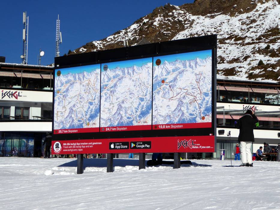 Orientierung (Pistenplan, Informationstafeln, Ausschilderung) und Sicherheit im Skigebiet Ischgl/Samnaun – Silvretta Arena